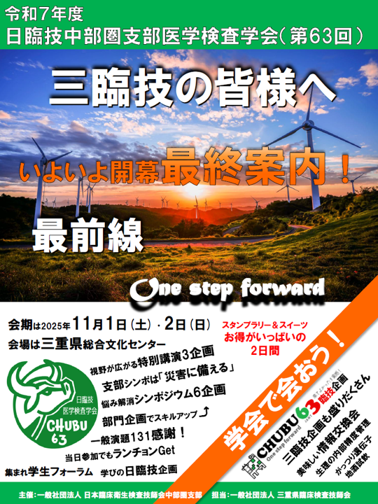 ぜひ令和7年度 日臨技中部圏支部医学検査学会(第63回)にご参加ください。
